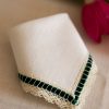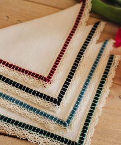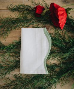 Lo que realmente distingue a estas servilletas es su ribete curvy en negro, que le otorga un toque de distinción y dinamismo. El borde curvado no solo suaviza las líneas rectas, sino que también aporta una sensación de fluidez y elegancia, elevando el diseño clásico de las servilletas a un nivel más sofisticado. Este detalle cuidadosamente acabado refuerza la armonía cromática de las servilletas, aportando un acabado limpio y elegante.