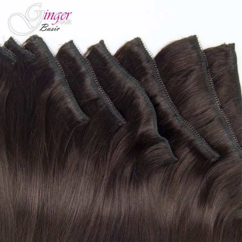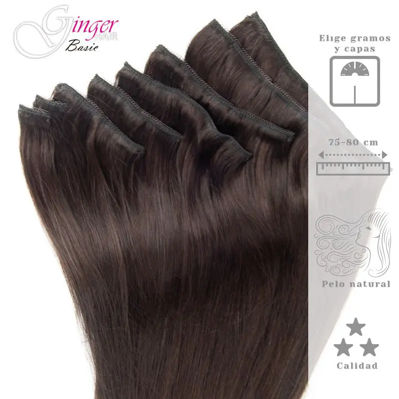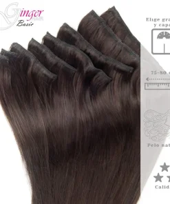 Estas extensiones de clip de 75-80 cm de largo pertenecen a nuestra marca GInger Hair Basic, una firma que trabaja todos sus productos en pelo natural procesado. Su calidad es moderada en comparación con otras de nuestras marcas como DH Hair Extensions o She By SOCAP que fabrican en cabello remy. No obstante, esta marca destaca por su excelente precio, por su aspecto natural.