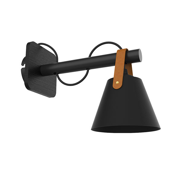 IM1 LAMPARA APLIQUE T/CAMPANA PLASTICO NEGRO C/FONDO AÑEJADO DETALLE T/CUERO 26803B-BK 1L E27 (CH)