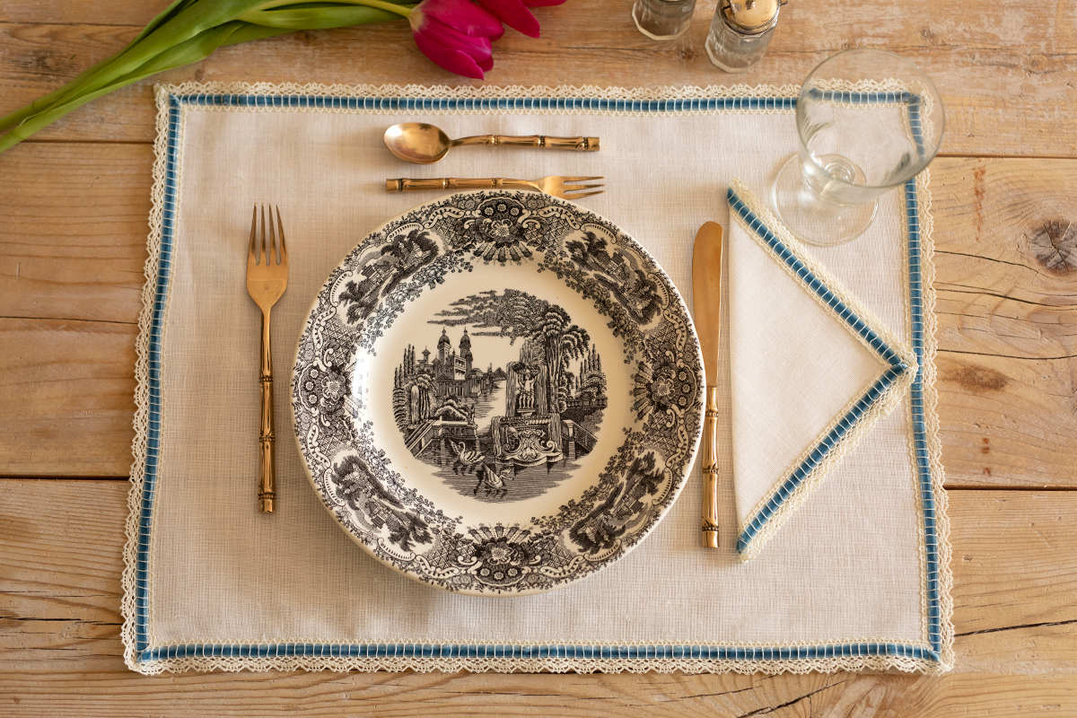 Un clásico elegante que nunca pasa de moda. Nuestro individual de lino con entredós de terciopelo azul es una pieza atemporal, pensada para acompañar mesas cuidadas, con gusto y personalidad. Su diseño combina sencillez y sofisticación, convirtiéndola en la elección perfecta tanto para una comida especial como para el día a día.