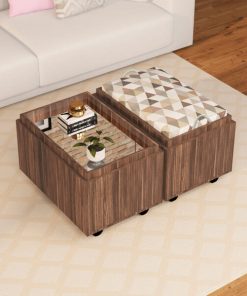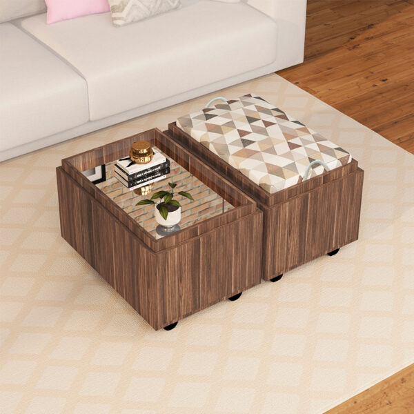 MESA CENTRO CON PUFF PU2053 TECNOMOBILI NOGAL CON TELA 388