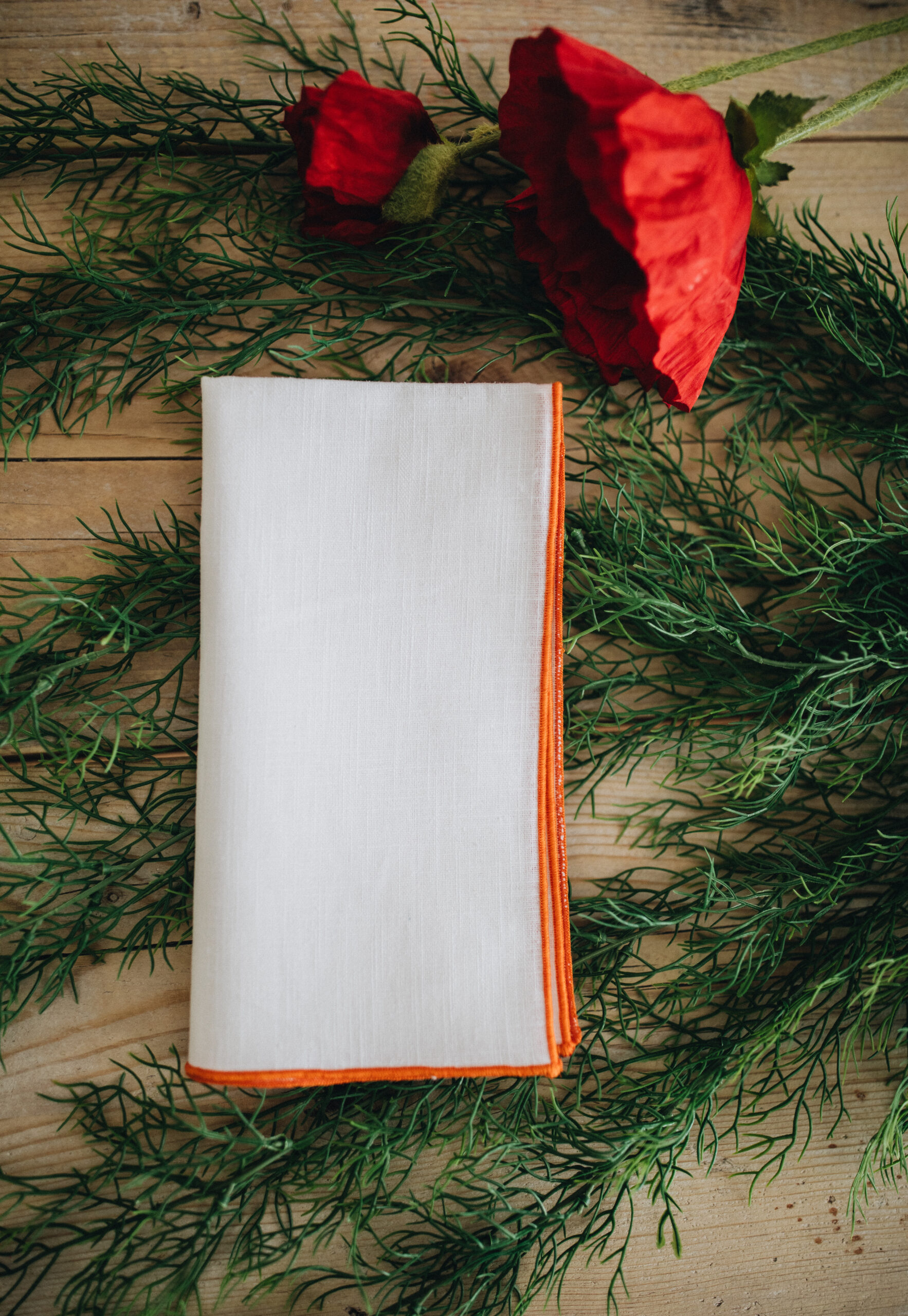 La servilleta de mesa de lino blanco con festón naranja es una opción vibrante y elegante para vestir tu mesa con un toque cálido y moderno. Confeccionada en lino blanco de alta calidad, esta servilleta ofrece una textura suave y duradera, perfecta para cualquier tipo de evento. El festón naranja en los bordes crea un contraste llamativo y alegre, añadiendo un detalle único que resalta sobre cualquier vajilla y decoración.
