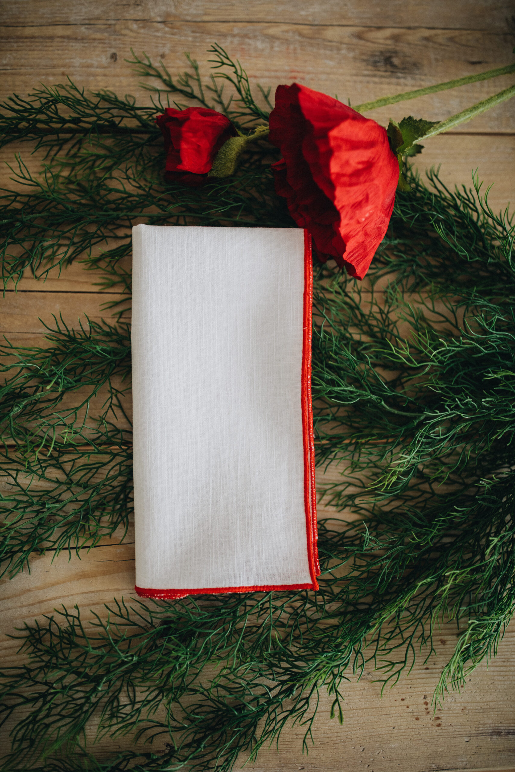 En resumen, la servilleta de mesa de lino blanco con festón rojo es una excelente opción para aquellos que buscan añadir un toque de elegancia y color a su mesa. Entra en nuestra web y consigue el tuyo para hacer de cada ocasión algo verdaderamente especial y lleno de estilo.