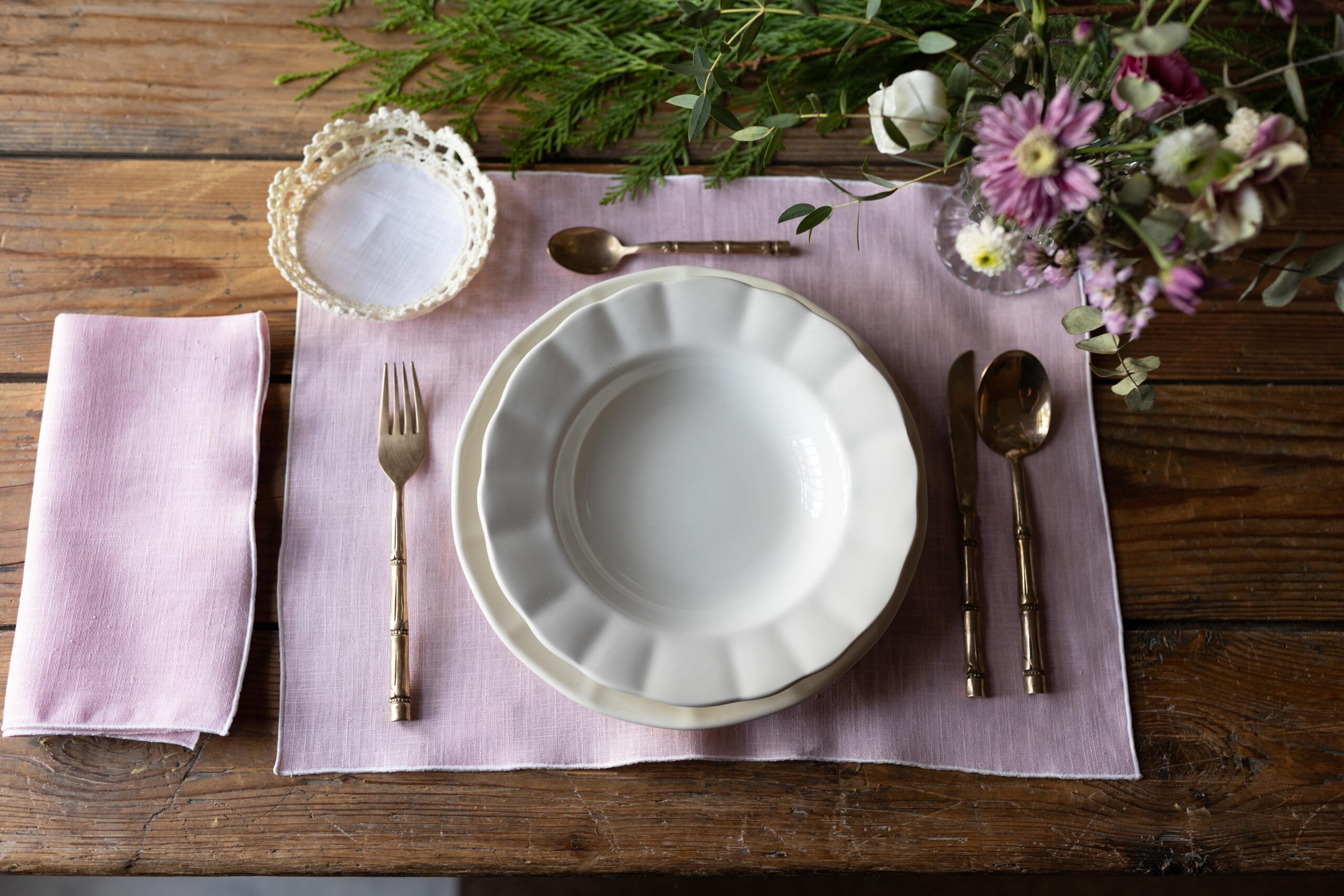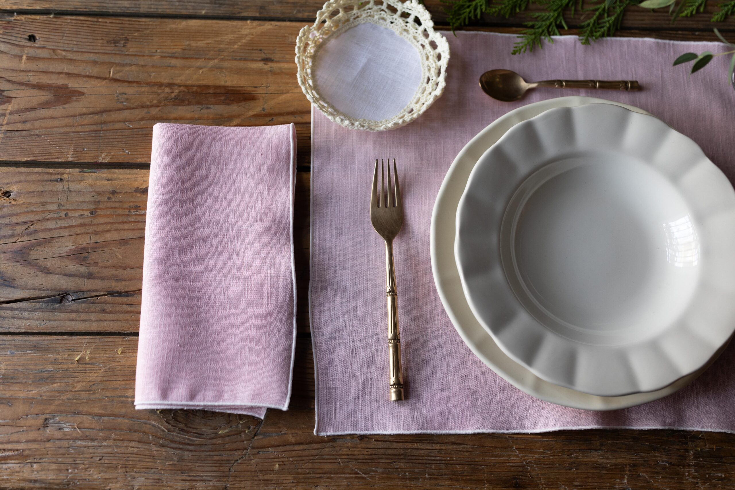 Descubre el encanto de la simplicidad con nuestro exclusivo Set Individual y Servilleta Carmen de lino rosa con festón rosa, diseñado por Espigas de Trigo para transformar cada comida en una experiencia especial. Confeccionado con lino 100% natural, este conjunto combina elegancia, tradición y funcionalidad, convirtiéndose en el complemento perfecto tanto para un uso diario refinado como para recibir a tus invitados con un toque de distinción.