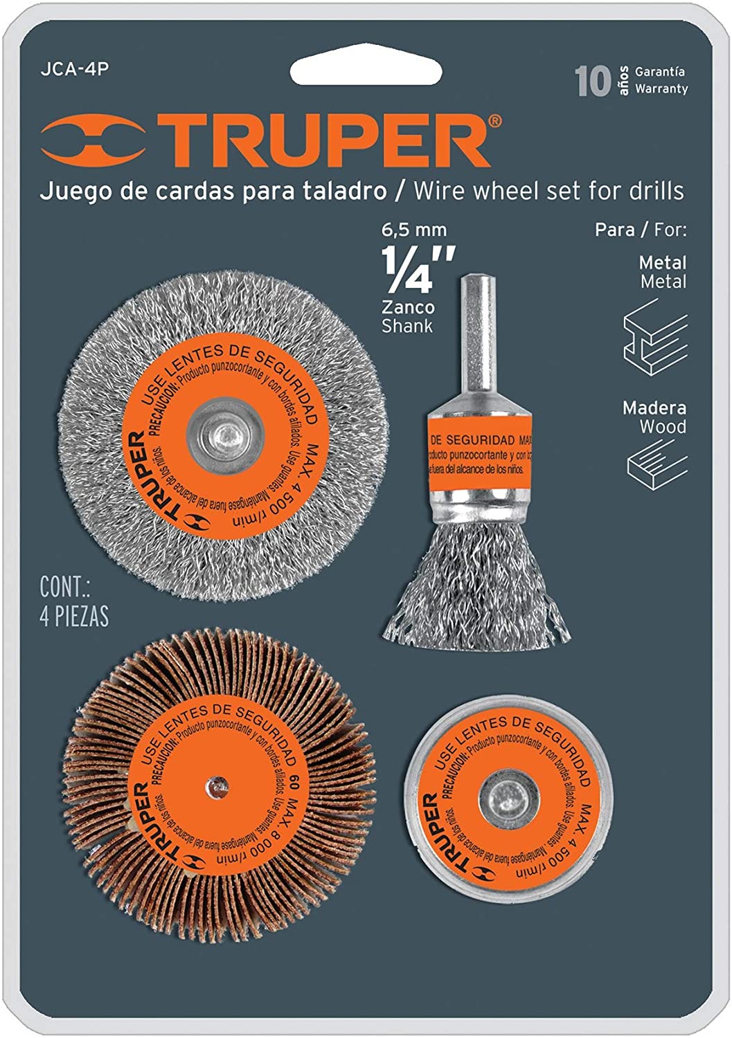 TRUPER JUEGO CEPILLOS ACERO P/TALADRO 4PCS JCA-4P (11577) (2202238)